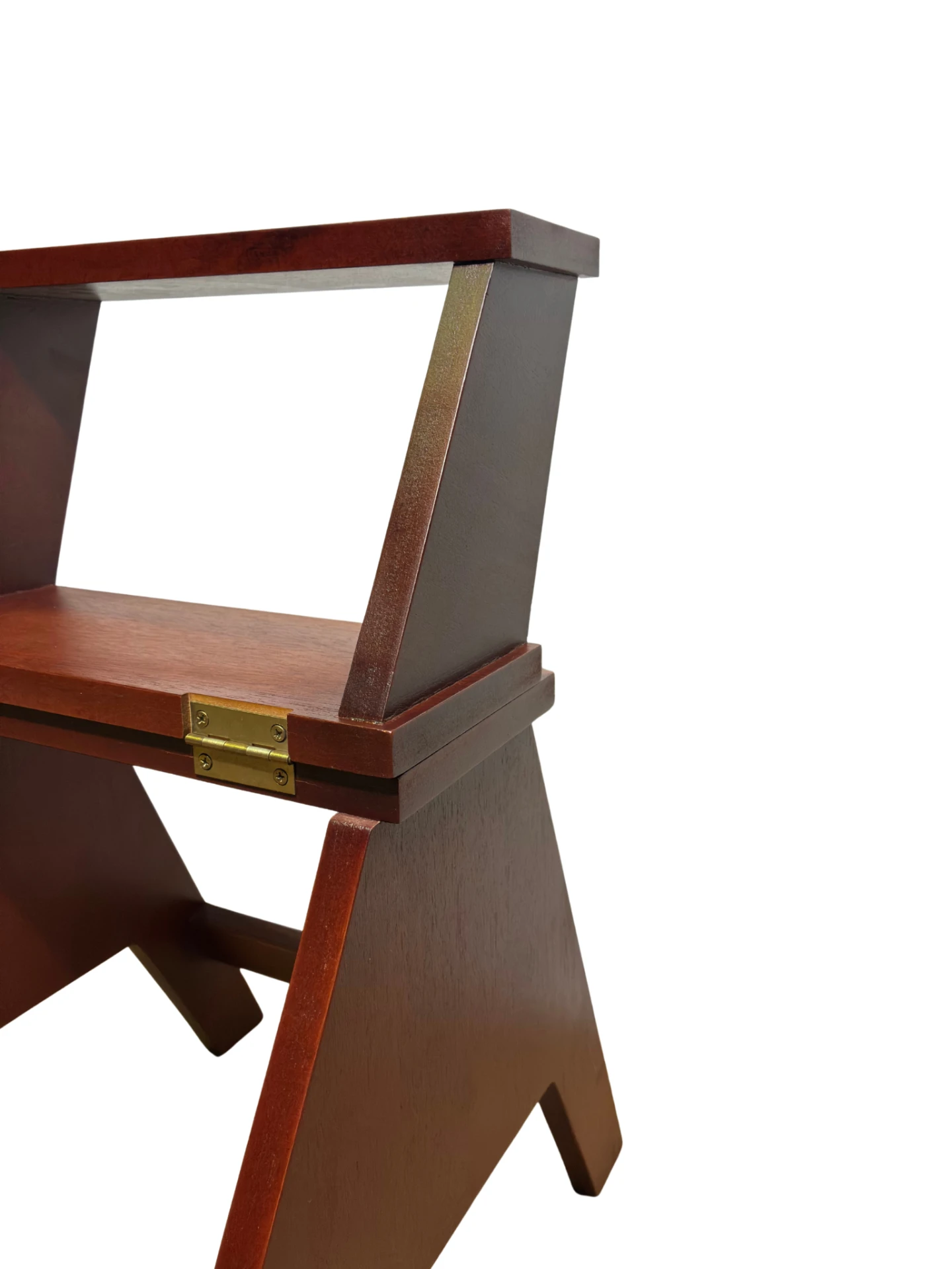 Banco de dos niveles, funcional y resistente. Ideal para alcanzar estantes, utilizar como asiento auxiliar o decorar cualquier ambiente. Fabricado artesanalmente en madera maciza, con terminación de calidad.